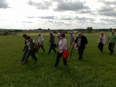 Wolfgang Kopp zusammen mit den Herren Rechtsteiner führte uns in einer 90-minütigen Wanderung zu den Schönheiten des Biosphärengebiets im Bereich Frankenhofen/Tiefenhühlen. Im Anschluss trafen wir auf dem Dorfplatzfest in Tiefenhühlen ein.